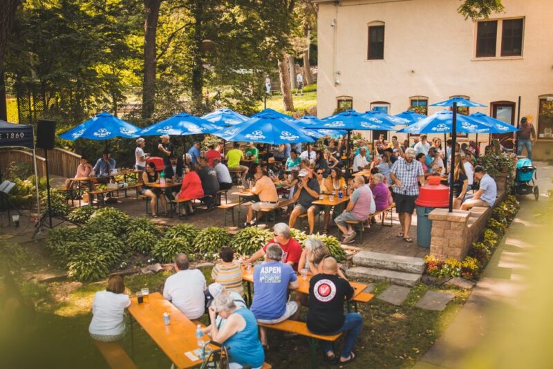 You betcha! We allow furry friends in the Biergarten and outside on the grounds. Dogs are not allowed anywhere inside the Visitor Center. All dogs must be leashed and well-behaved. (This rule does not apply to service dogs. Service dogs are allowed to accompany their humans anywhere in our Bierhalle and Visitor Center.)