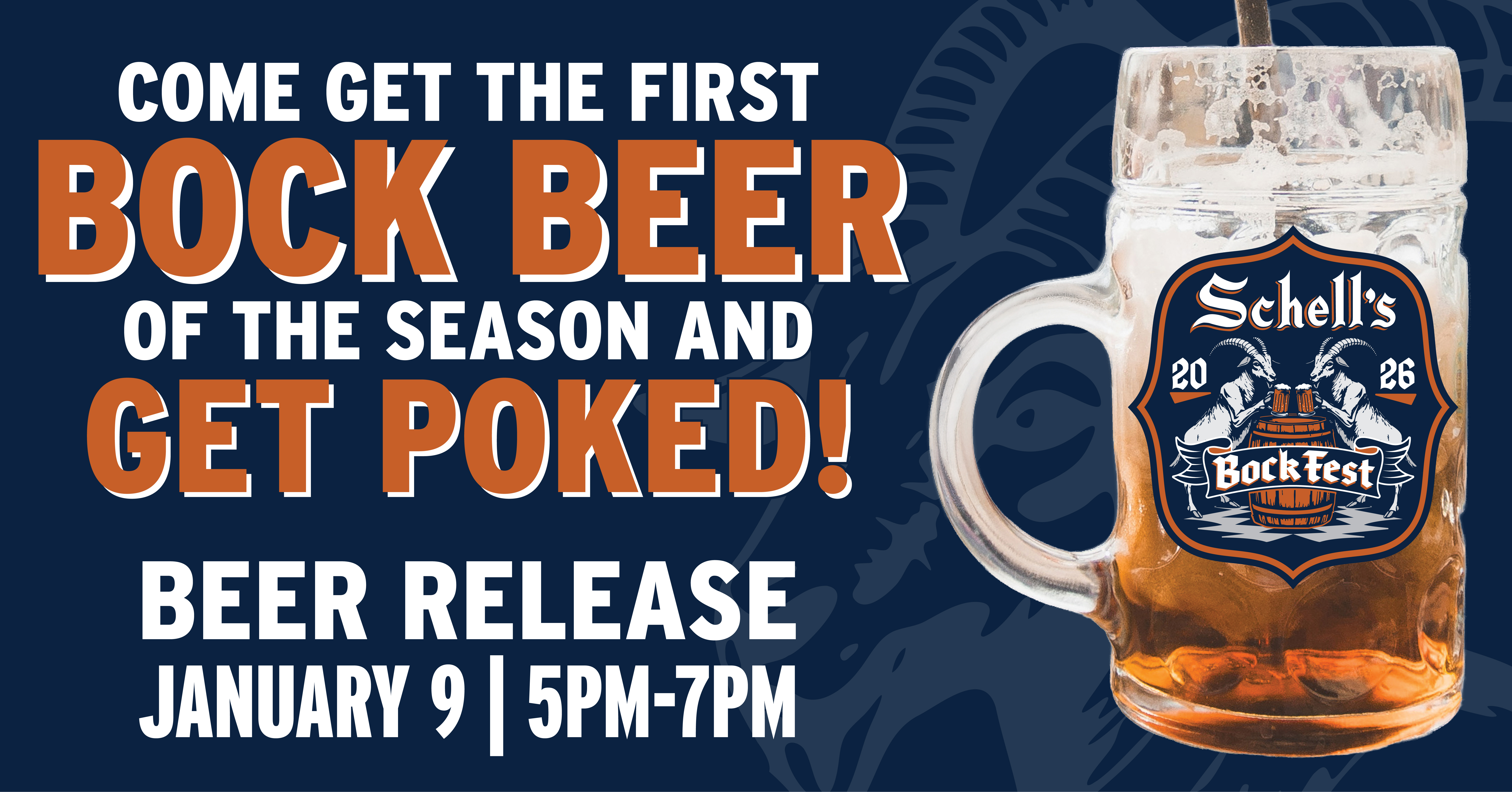 Be among the first to enjoy the season’s first Bock at our Bock Beer Release on January 9 from 5–7 PM. This rich, malt-forward beer is perfect for winter and will be available the normal way or served poked for a special twist!