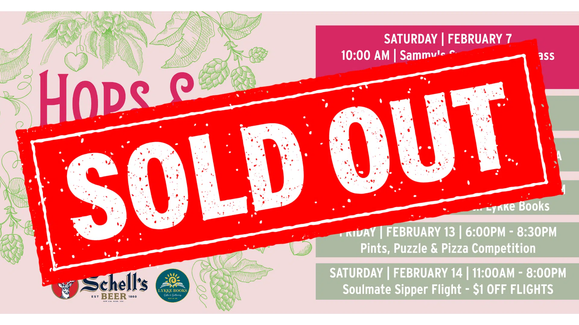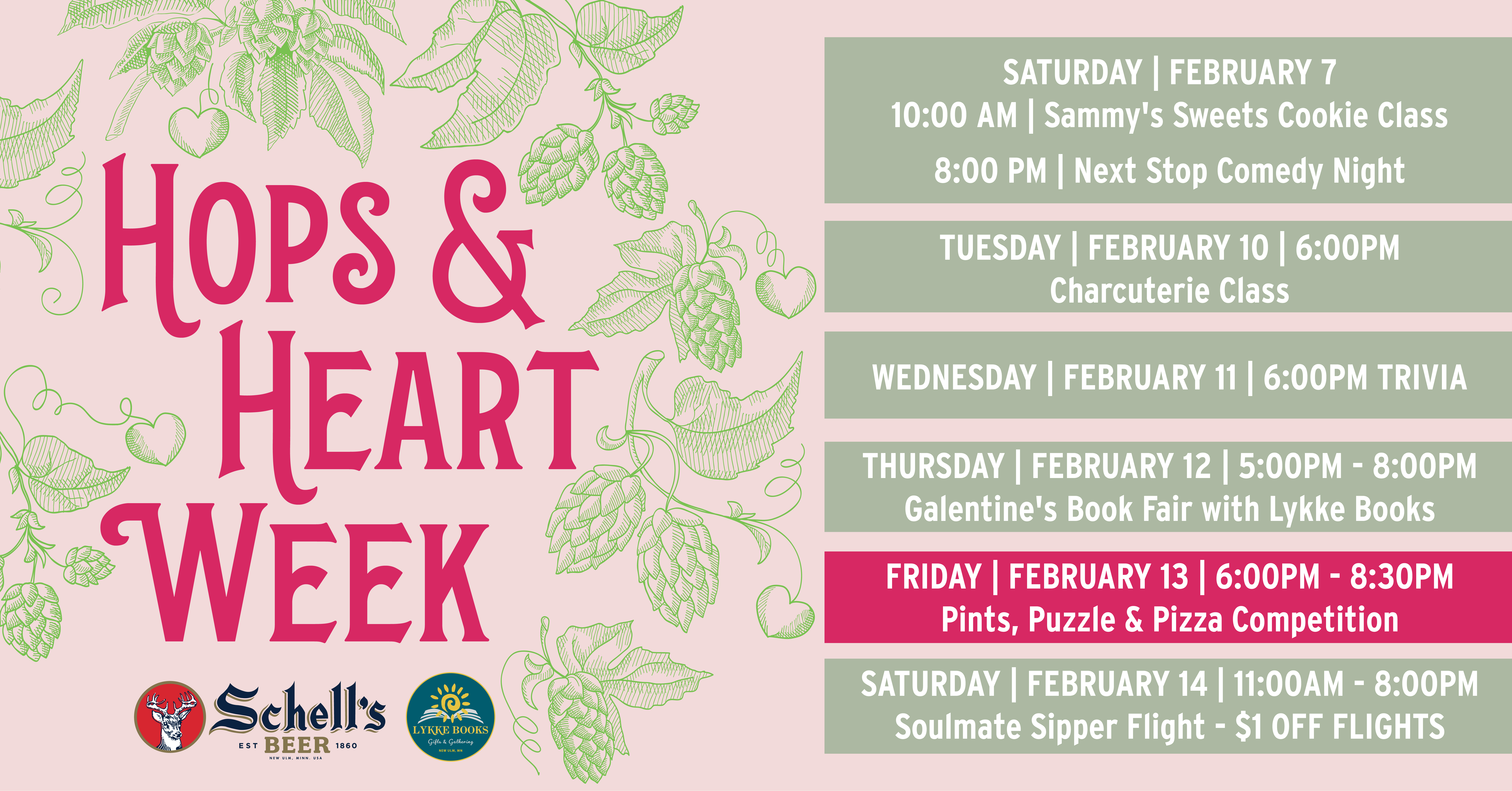 Celebrate with a little competition and fun at Schell's Brewery! Teams of four (4) will put their appetites, thirst, and mental prowess to the test! Open to any group who loves hops and has a heart. In this thrilling competition, participants must devour a scrumptious heart shaped pizza while working together to solve a mind-boggling